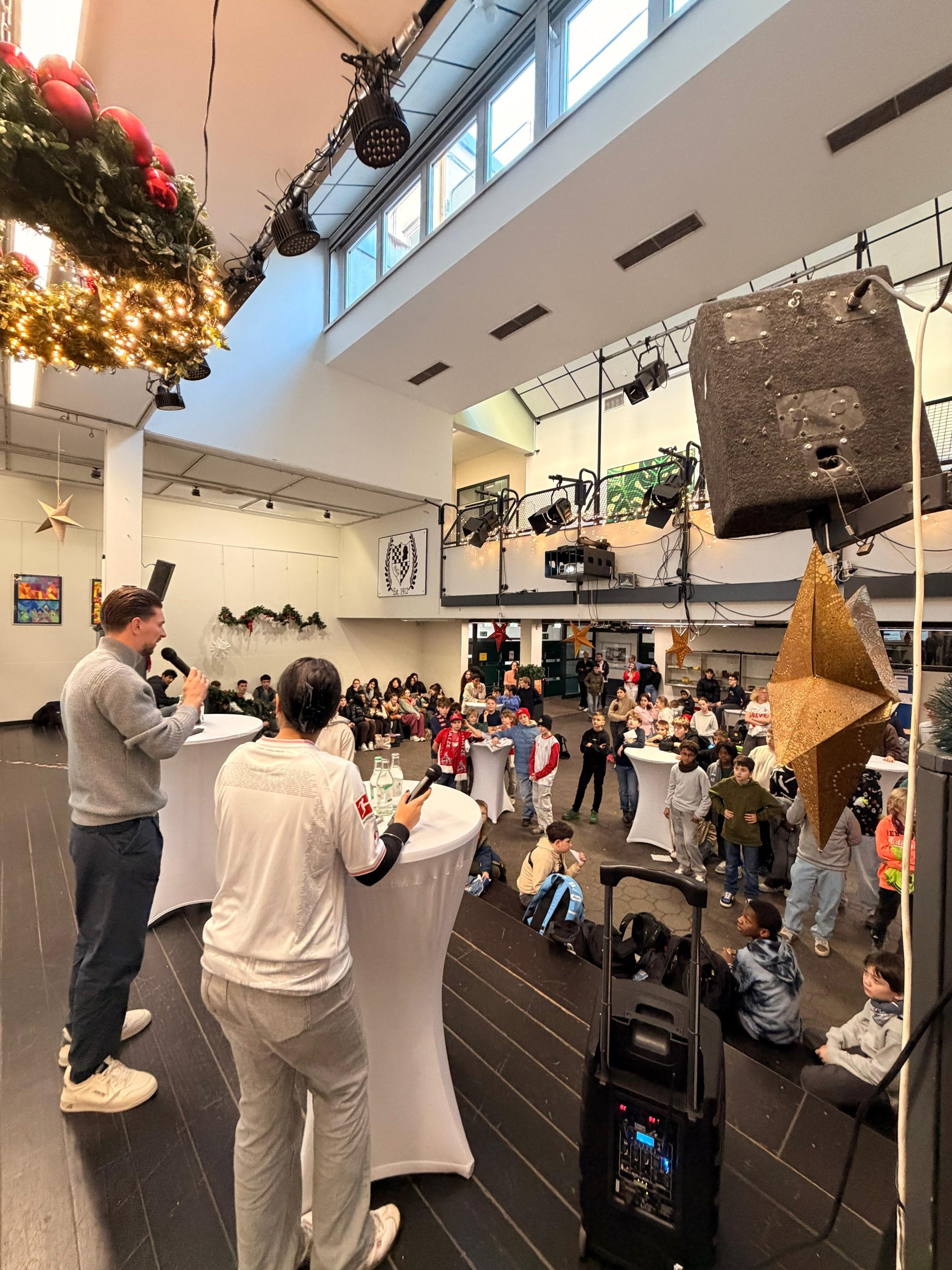 Ron-Robert Zieler, ehemaliger Schüler des HöGy und Torwart beim 1.FC Köln, hat bei seinem Besuch an unserer Schule am Donnerstag, den 11.12.25, den Betrag um weitere 100€ erhöht, sodass wir insgesamt die tolle Summe von 922,94€ spenden konnten.